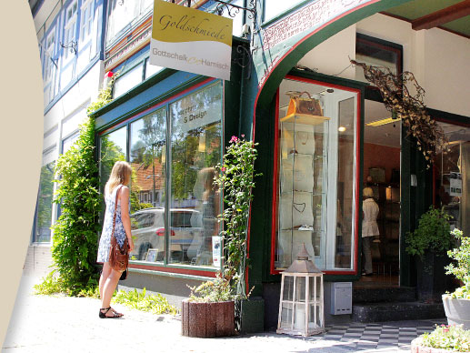 In Bad Salzdetfurths bester Lage im Herzen der Altstadt finden Sie die Geburtsstätte von zauberhaft schönem Schmuck. Sie können bequem vor der Tür parken und den Besuch der Goldschmiede mit vielerlei Aktivitäten verbinden. Das Solebad und der Kurpark sind beliebte Ausflugziele, zu längeren Wanderungen oder Mountainbiketouren lädt die idyllische Umgebung Bad Salzdetfurths ein und direkt neben der Goldschmiede lockt die Eisdiele, sich mit Leckereien verwöhnen lassen.